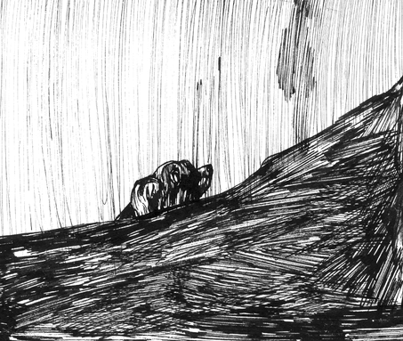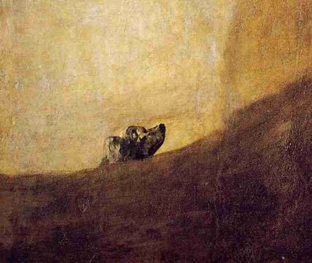 Francisco de Goya: El Perro (1820–1823). Als Titel wird auch angegeben: El Perro semihundido [hundir = versenken, vernichten].